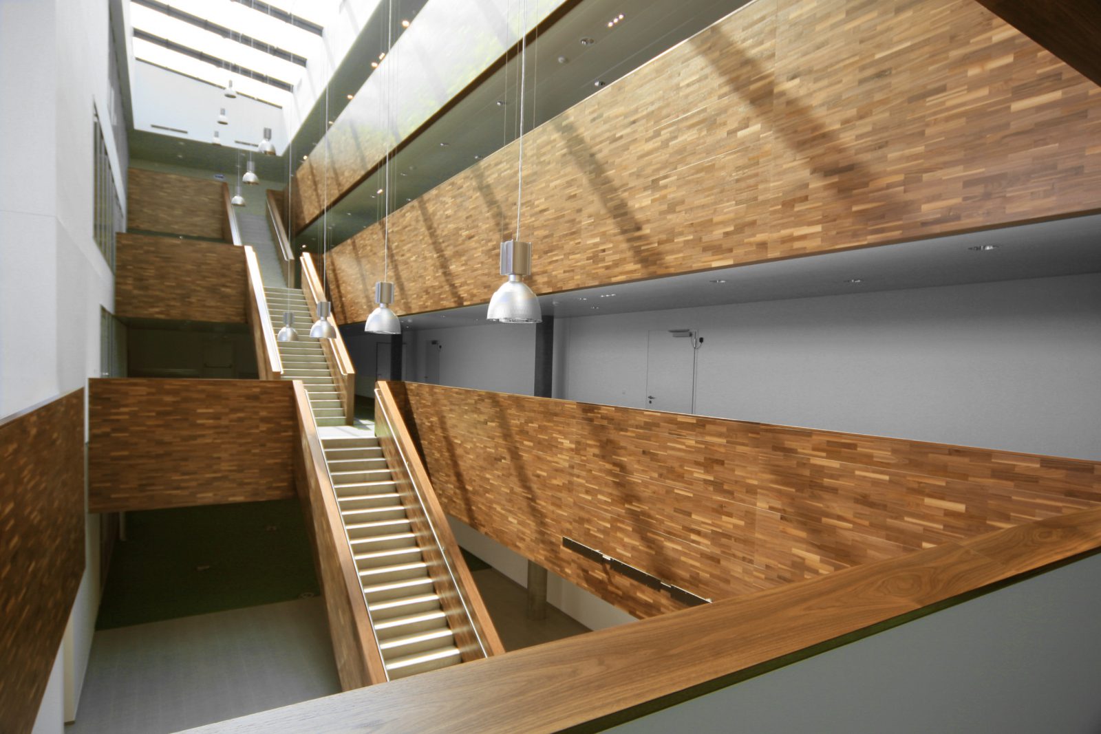 The new training building unites the training facilities of all departments of the Austrian Airlines Group under one roof. At the heart of the building is an atrium with communal and circulation areas as a communicative center. The materials used and the atmosphere are intended to give AAG’s well-traveled personnel a feeling of coming home. The combination office areas are arranged around the atrium in the northern part of the building, and the training rooms in the southern part. The urban planning solution envisages the creation of a formative identity-forming campus, which can also be used as an open-air area for the café. The façade makes reference to flying as an abstracted sky, and the design of the outdoor space and atrium was inspired by landscape patterns as seen in aerial photographs.